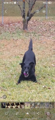 | Beau is a black lab mix. He is 16 years old and his hearing is not the best anymore. Beau LOVES people and will not run away when called. He is black with white on chest/belly and graying snout. |