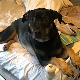 Description: | Charlie is black with tan markings on his legs, chest and face. He is 75lbs and a large mix breed dog. He is skittish and may not come to people. |
