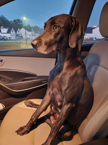 Female. She has had babies. She is very friendly. Rides in the car very well.